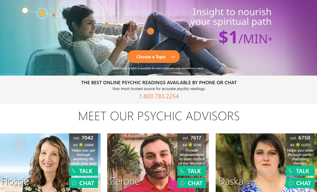 It is easy to see why this is one of the most popular destinations for anyone who wants aa great psychic reading, and why psychics all want to qualify to be on this site (though most never make it). This is an easy to use service that gives you the advice and comfort you need for almost anything happening in your life today.