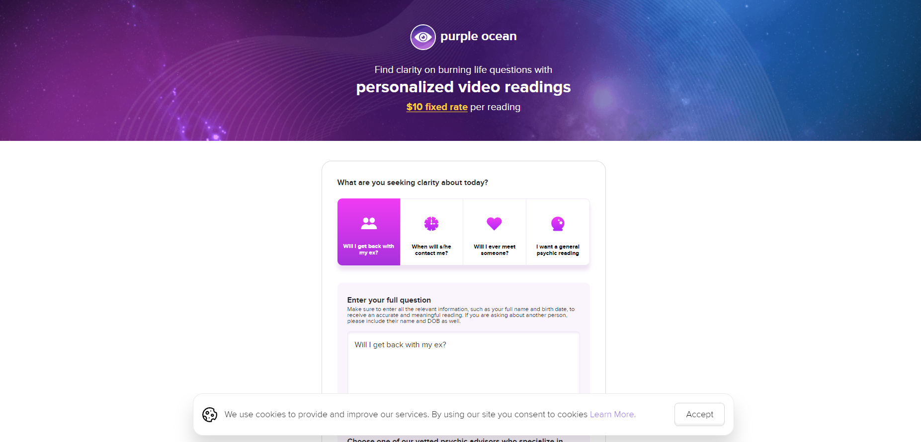 You wonât find a better or easier to use live psychic reading service anywhere on the net. The fact that Purple Garden has chosen to focus exclusively on their app-based services really helped them to be able to excel in their service area. With a huge number of positive reviews (4.7 on iOS / 4.1 on Google Play), and fiercely loyal clients who use this service, it is easy to say that this app is an absolute must for anyone who wants to get a psychic reading of any type.